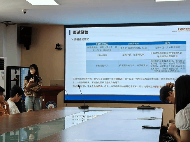 本次分享会邀请了南昌大学信息工程学院2023级研究生丰子怡。子怡学姐结合自身科研与面试经历,系统分享了面向研一同学的学习方法、职业准备与求职策略,从课程学习、简历写作、面试问题等多个角度展开讲解,强调了从“被动学习”向“主动研究”转变的重要性,并指出通过参与项目和多参加面试提升综合能力的必要性。此外,她还鼓励同学们积极读文献、参与科研项目,积极投递简历,为后续学术发展和工作方向奠定坚实基础。