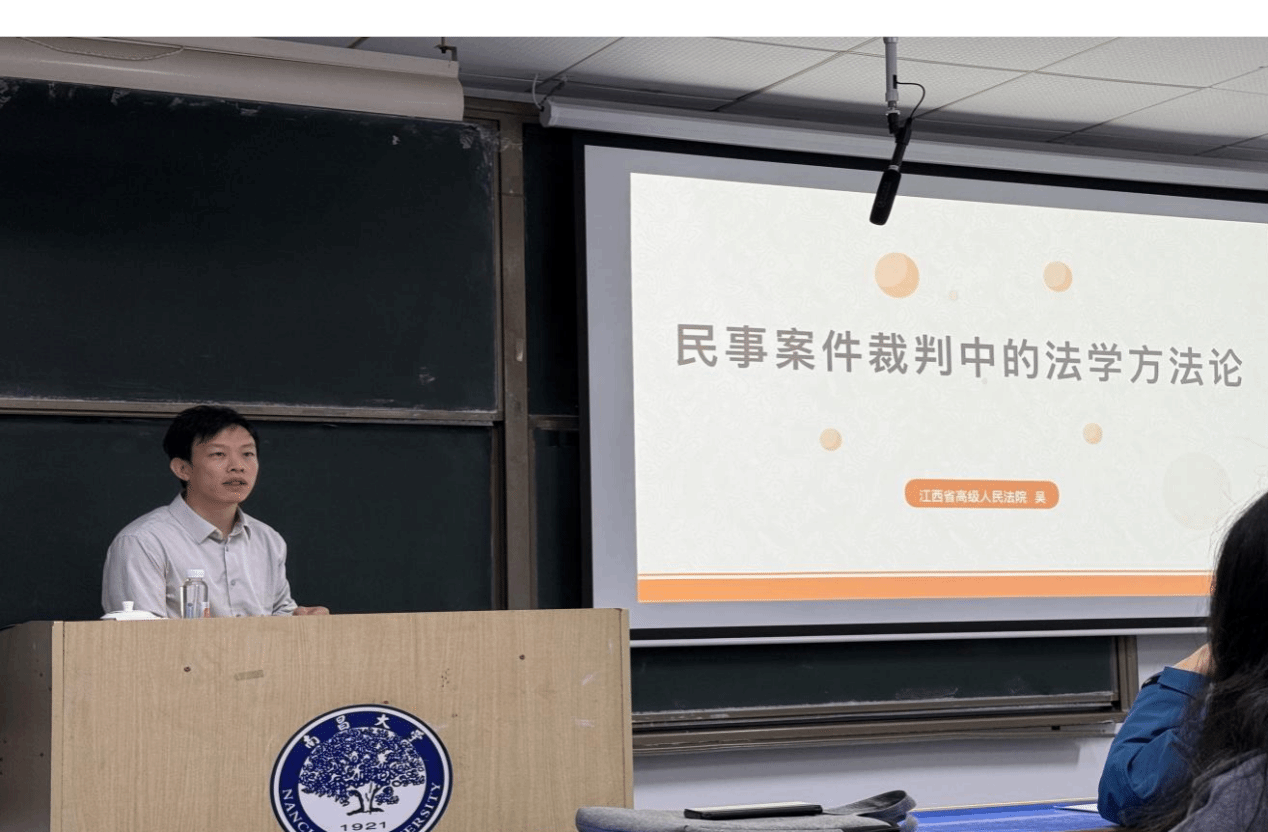 11月5日19:00,第七期“南昌大学地方立法高端论坛”在法学院 A243 顺利开展。本次讲座特邀江西省高级人民法院民一庭四级高级法官吴狄主讲,主题为《民事案件裁判中的法学方法论》。本次讲座由立法研究中心邓建中主任主持,到场师生100余名。