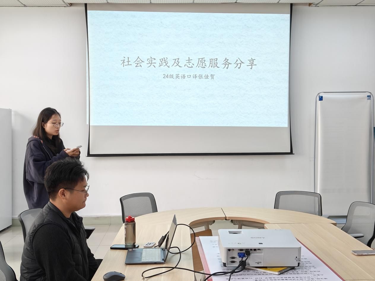 2025年11月24日下午,第221期“南小研”微讲堂活动在外经楼316教室成功举办。本期活动以“实践为帆,译路向前”为主题,邀请外国语学院2024级英语口译专业研究生张佳贺同学担任主讲,为同学们带来了精彩的分享。