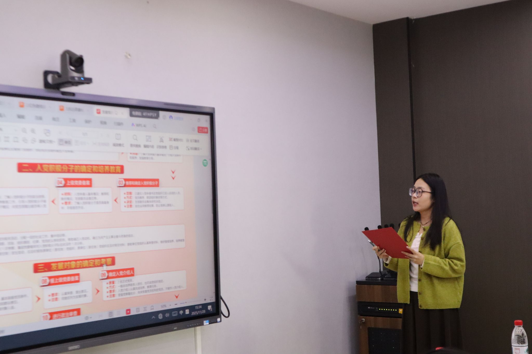 随后,学院生物学专业研究生党支部副书记王媛领学“学习资料摘编”重点内容,强化理论武装。基础医学专业研究生党支部副书记史玉冰详细介绍了党员发展流程与注意事项,为同学们积极向党组织靠拢提供清晰指引。