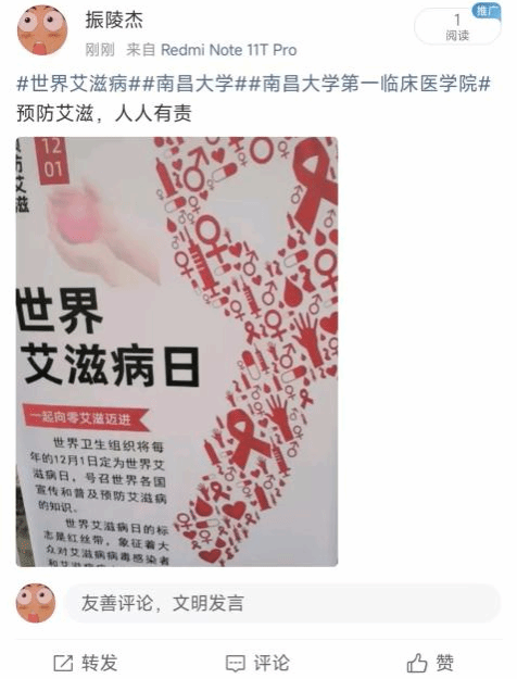 本次活动不仅是一次成功的公共卫生教育实践,更是一堂生动的生命教育课。它充分展现了南昌大学医学研究生们的专业素养与社会责任感,营造了“人人知艾、人人防艾、人人关艾”的校园氛围,为构建健康、无歧视的和谐校园贡献了青春力量。