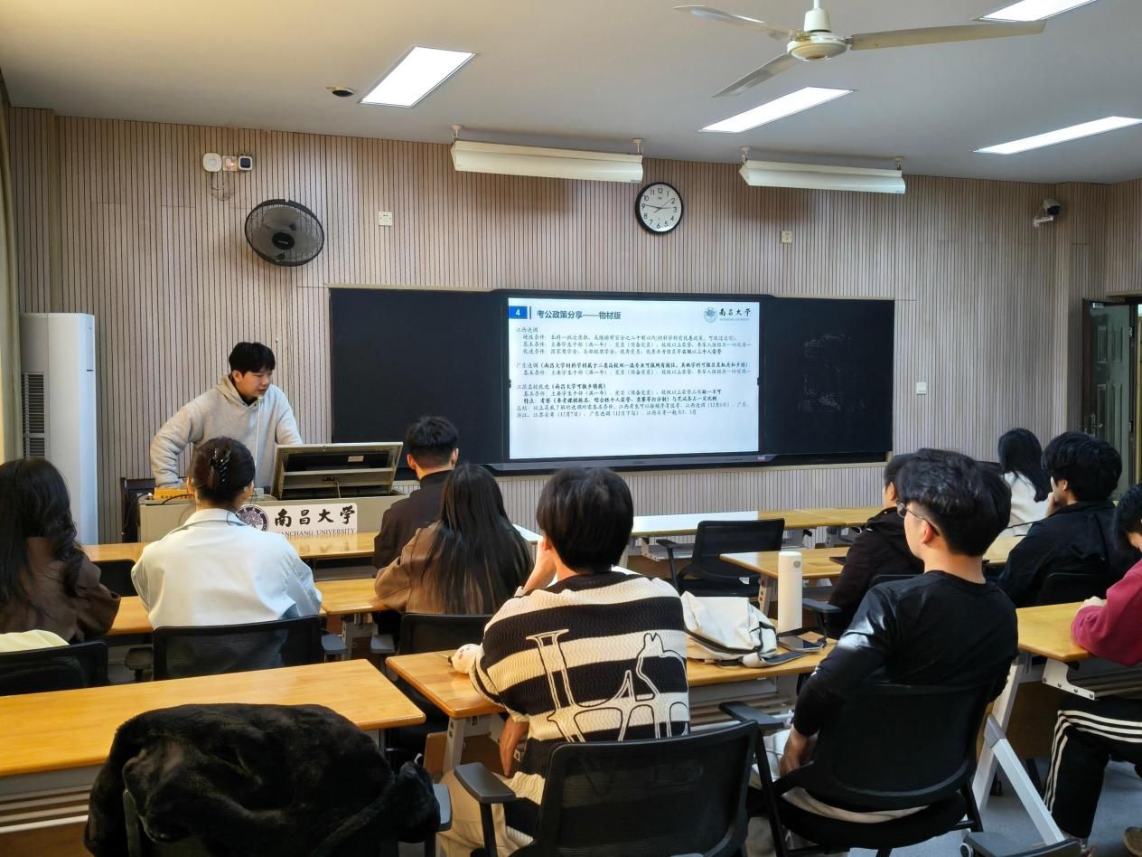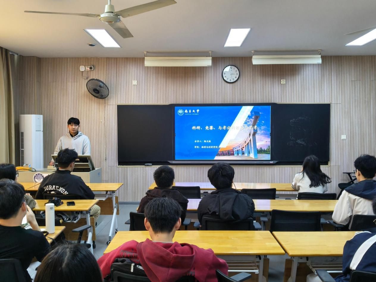 2025年11月28日,由南昌大学党委研究生工作部、校研究生会主办,物理与材料学院及学院研究生会承办的第16届“前湖研讲”研究生学术文化节“南小研”微讲堂(224期)在研究生院201教室顺利举办。本次“南小研”微讲堂特邀物理与材料学院2023级硕士研究生杨文俊,面向学院全体研究生作题为“研途成长:科研、竞赛与考公的经验与思考”的专题讲座。