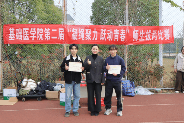 每支参赛队伍,不仅展现了各年级学子顽强拼搏的精神风貌,也延续了基础医学院师生同心、代代相传的凝聚力。活动尾声,学院领导老师们为获奖队伍颁发奖杯、荣誉证书并合影留念。