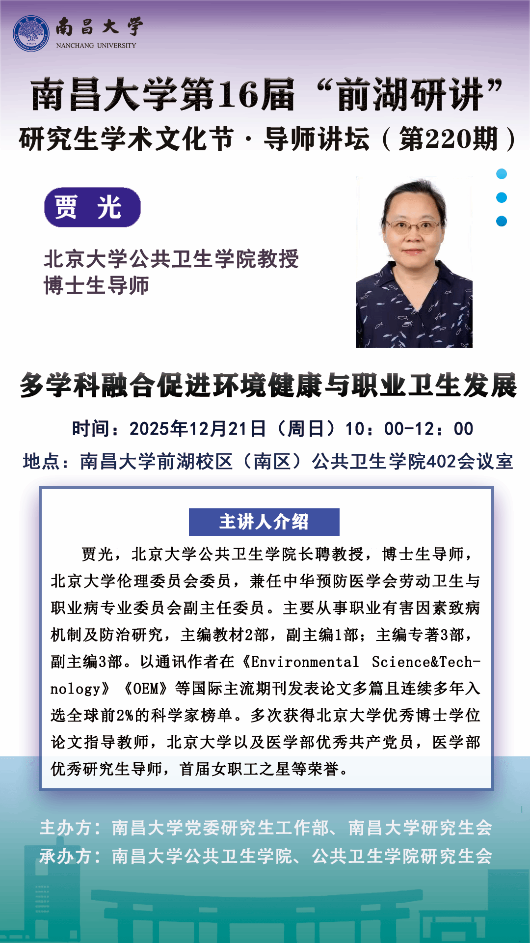 上一条:南昌大学第16届“前湖研讲”研究生学术文化节·导师讲坛(第221期)