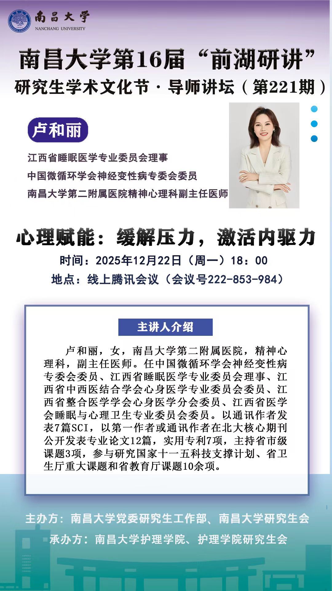 下一条:南昌大学第16届“前湖研讲”研究生学术文化节·导师讲坛(第220期)