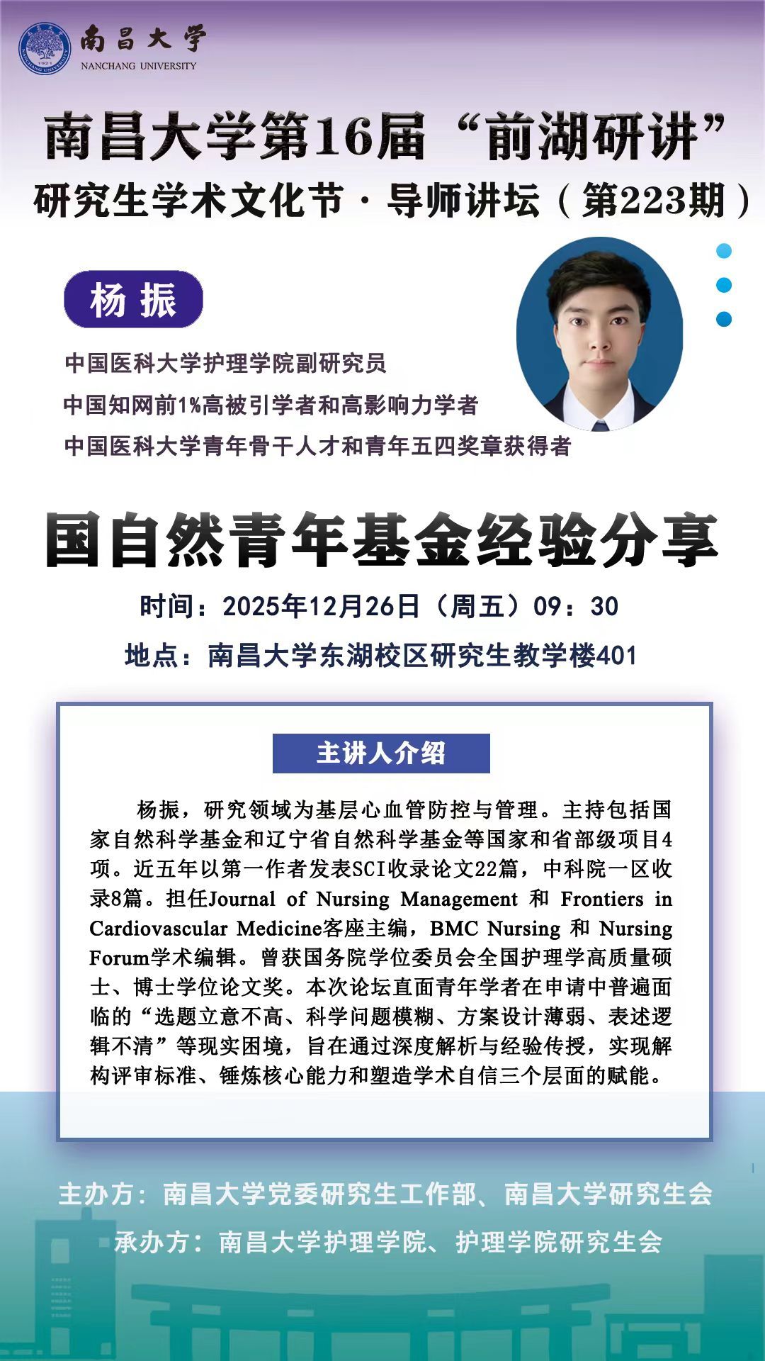 上一条:“前湖研讲”预告|南昌大学第16届“前湖研讲”研究生学术文化节·导师讲坛(第224期):国家社科基金经验分享
