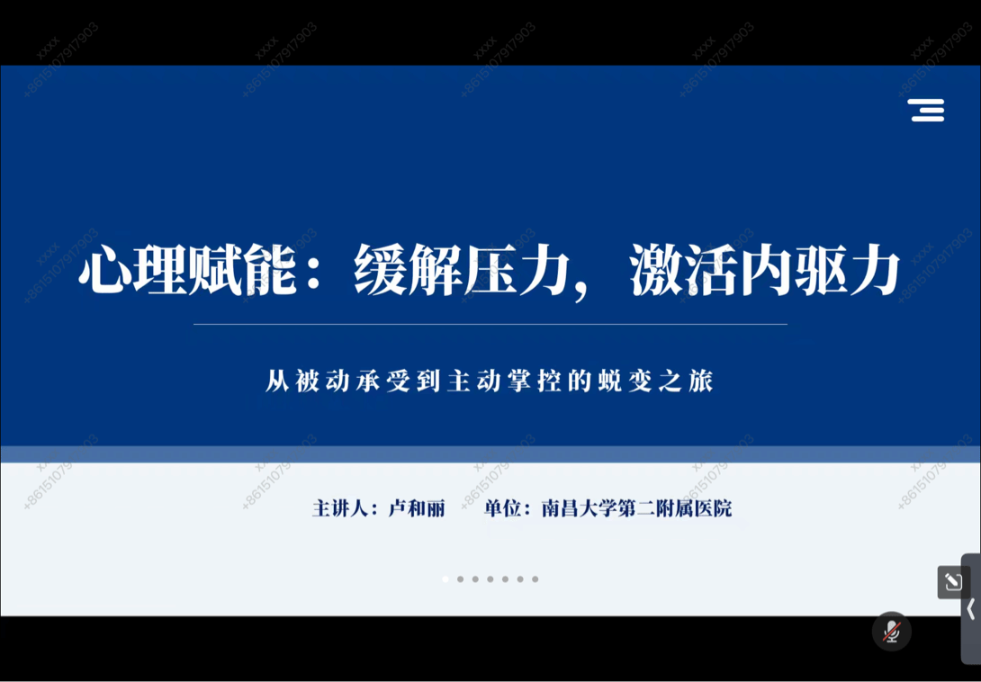 为帮助护理学院师生缓解心理压力,激活内在成长动力,2025年12月22日下午,护理学院特邀南昌大学第二附属医院卢和丽老师主讲“心理赋能:缓解压力,激活内驱力”主题讲座。八十余位师生齐聚线上,共同开启从被动承压到主动掌控的心理蜕变之旅。