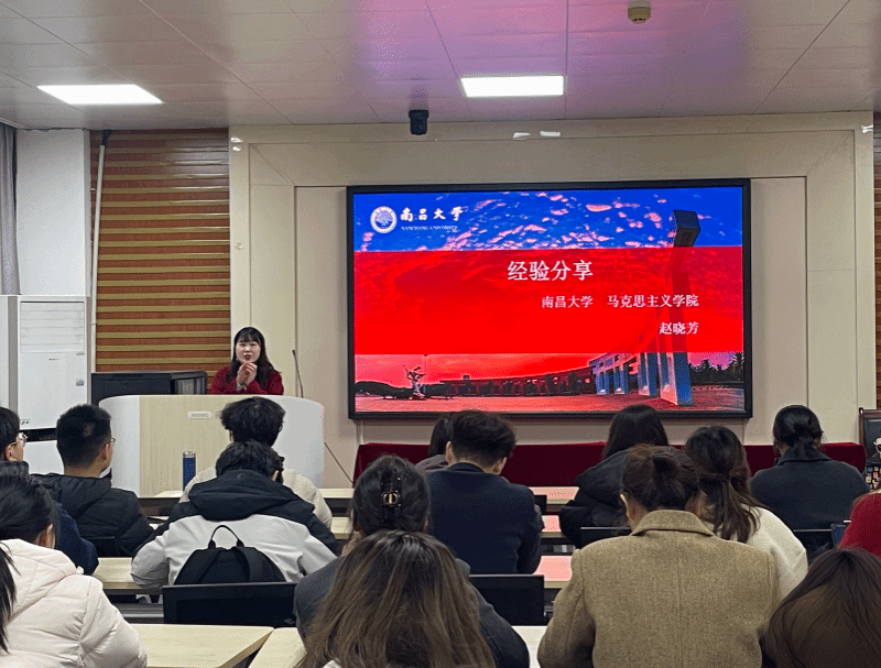 2025年12月19日,由南昌大学党委研究生工作部、南昌大学研究生会主办,马克思主义学院研究生会承办的南昌大学第十六届“前湖‘研’讲”研究生学术文化节·“南小研”微讲堂(第232期)在前湖校区文法楼A314举行。本次微讲堂特邀马克思主义学院博士研究生赵晓芳、硕士研究生何一淳担任主讲人,学院辅导员陈祥龙出席活动,马克思主义学院2025级全体同学到场学习。