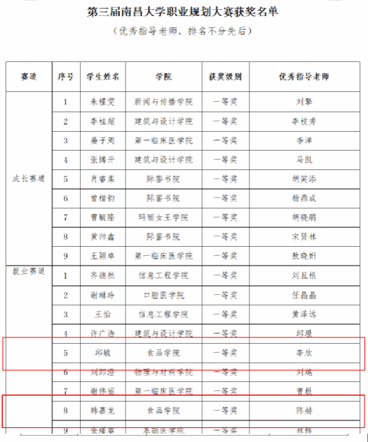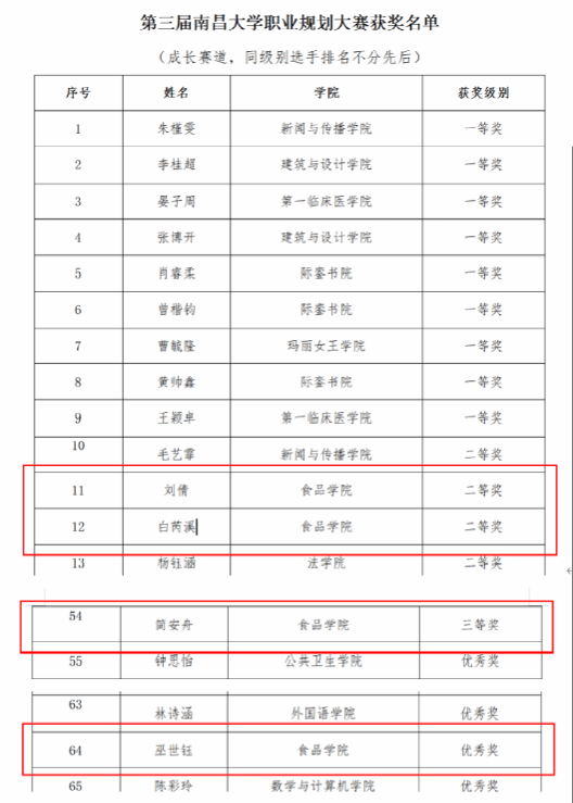 第三届南昌大学职业规划大赛(就业赛道)获奖名单