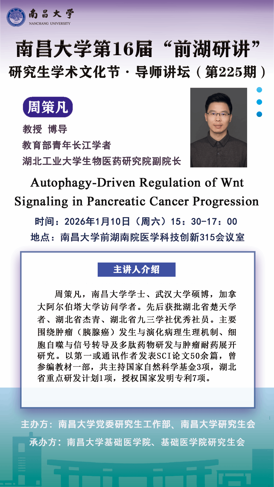 南昌大学第16届"前湖研讲"研究生学术文化节.导师讲坛(第225期)