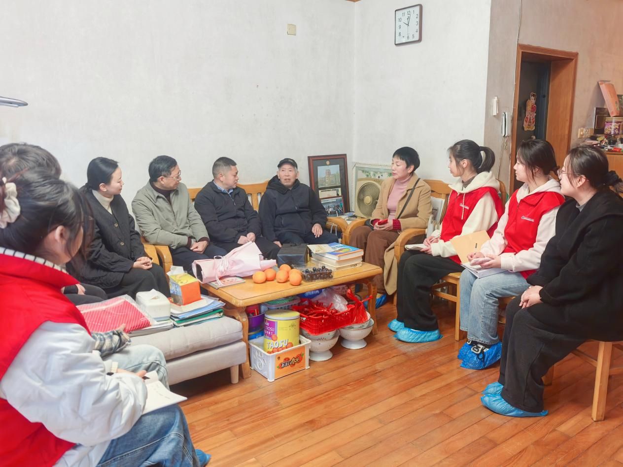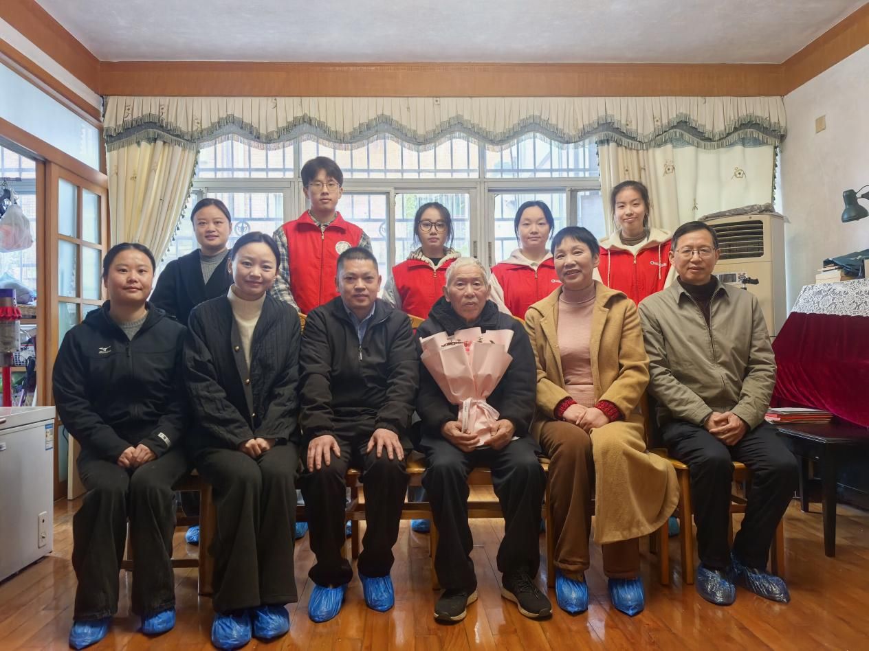 为弘扬教育家精神,传承教育薪火,厚植育人情怀,近日,基础医学院开展“医路朝夕”寻访老教师活动。在学院离退休党支部书记李刚老师的带领下,学院教师代表及学生萤火志愿者协会共计十余人一同走进退休教师、老党员刘龙平教授家中,一起聆听一位扎根讲台、为教育奉献一生的育人故事,并衷心向刘龙平教授致以诚挚的问候。