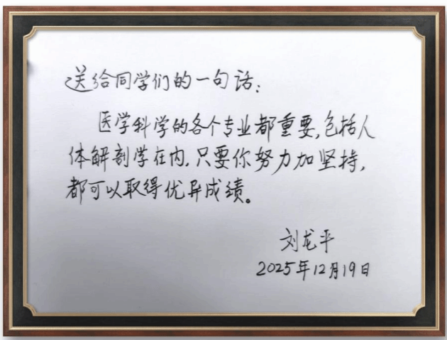 交流中,刘教授回顾了自己从临床转向基础、在解剖学领域扎根一生的心路历程。他强调:“医学科学的各个专业都重要,包括人体解剖学在内,只要你努力和坚持,都可以取得优异成绩。”这番话既是对自身经历的总结,更是对在场师生的殷切寄语。他鼓励青年学子珍惜时光、夯实基础、不畏艰难、持之以恒,在任何一个医学岗位上都能发光发热。