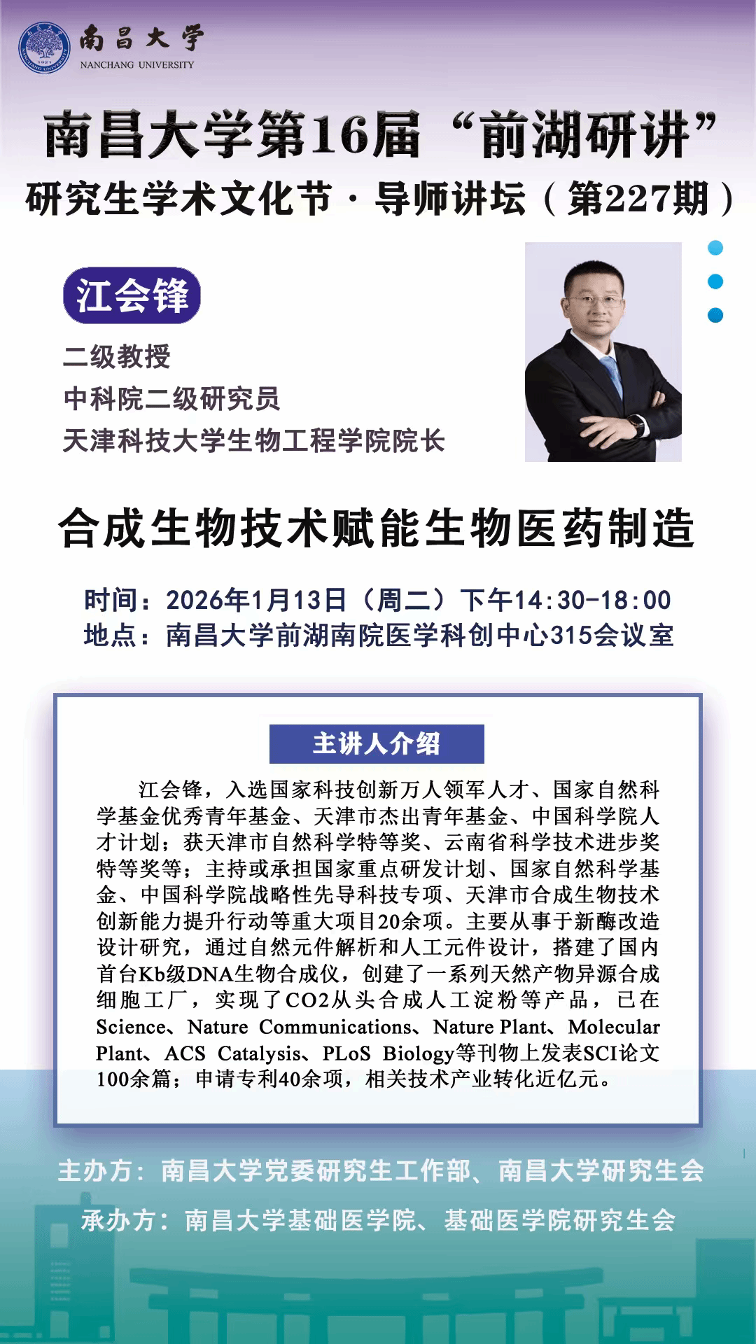 下一条:南昌大学第16届“前湖研讲”研究生学术文化节·导师讲坛(第226期)