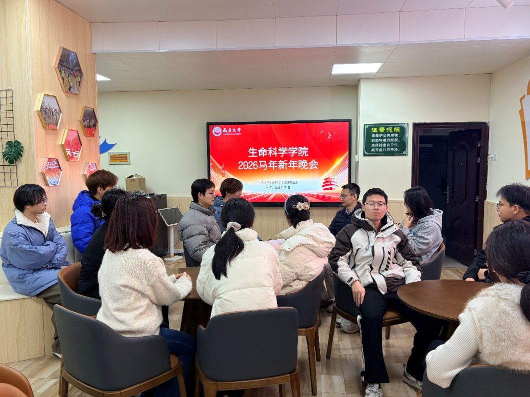 2026年1月1日晚,南昌大学生命科学学院研究生会“凝心聚力,温暖启航”元旦座谈交流会在前湖校区理科生命大楼教职工A211温馨举行。学院罗晓通老师与研究生会各部门学生骨干欢聚一堂,在轻松融洽的氛围中共同回望过去半年的工作点滴,畅谈成长感悟,共话新年愿景。