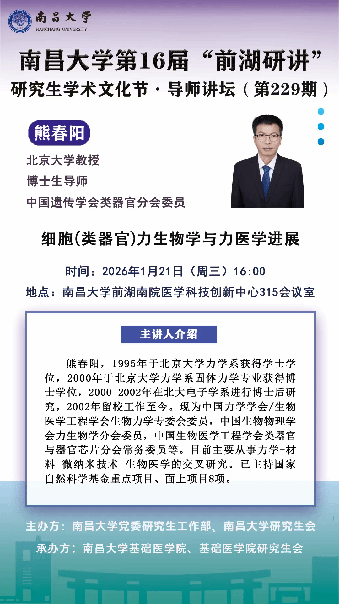 上一条:南昌大学第16届"前湖研讲"研究生学术文化节.导师讲坛(第230期)