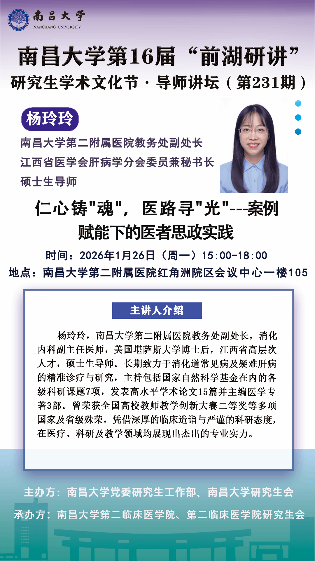 南昌大学第16届"前湖研讲"研究生学术文化节.导师讲坛(第231期)