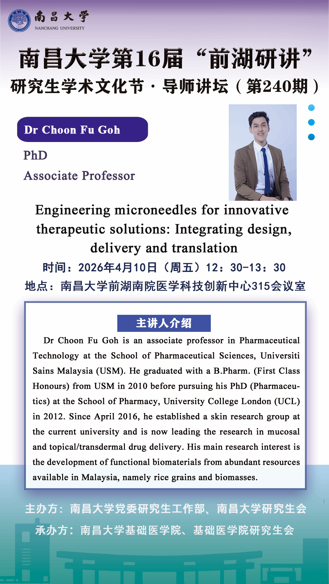 南昌大学第16届"前湖研讲"研究生学术文化节.导师讲坛(第240期)