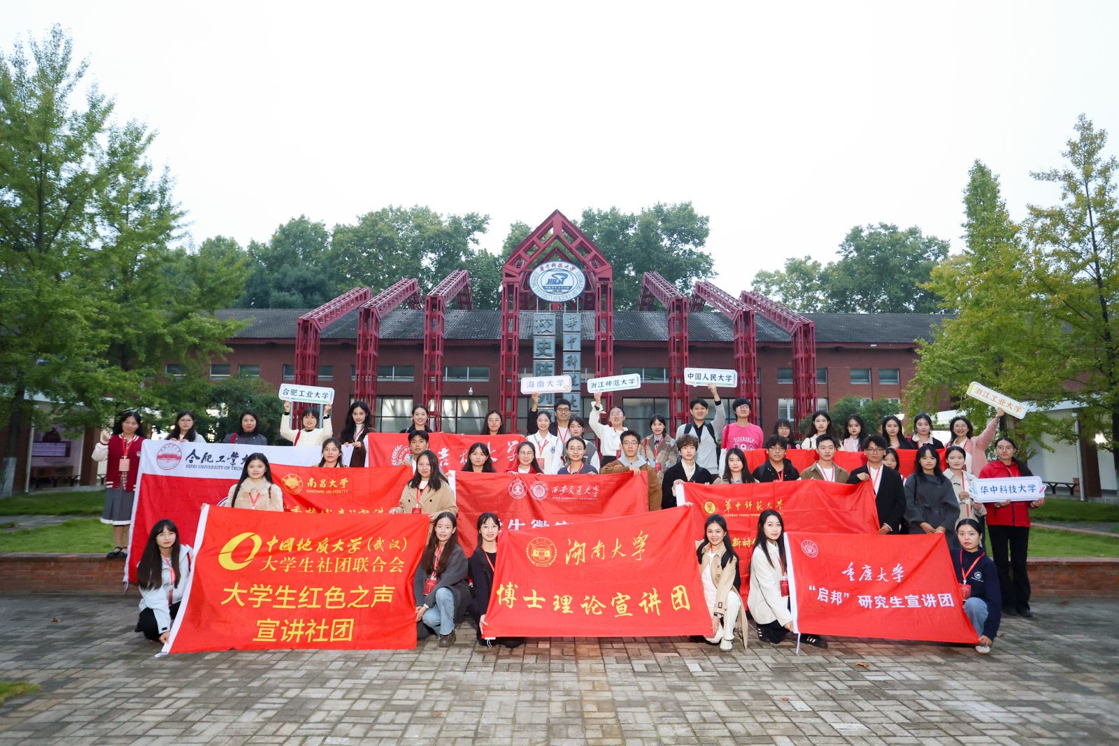 为缅怀革命先烈、传承抗战精神,引导青年学子厚植家国情怀,10月24日至26日,南昌大学“香樟博声”宣讲团成员受邀赴华中科技大学,参与“我和祖国共成长”纪念中国人民抗日战争暨世界反法西斯战争胜利80周年全国高校青年理论接力宣讲活动,与全国20余所高校青年讲师代表齐聚一堂,围绕时代责任与青年使命展开深入交流,共议青春担当,以期赓续抗战精神。