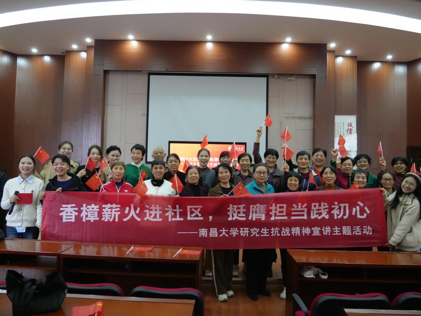 传承不朽抗战精神,凝聚青年奋进力量。为纪念中国人民抗日战争暨世界反法西斯战争胜利80周年,11月5日下午,南昌大学研究生走进南昌市红谷滩区世纪中央城社区,采用“文艺+宣讲+互动”的多元形式开展“抗战精神”主题宣讲活动。