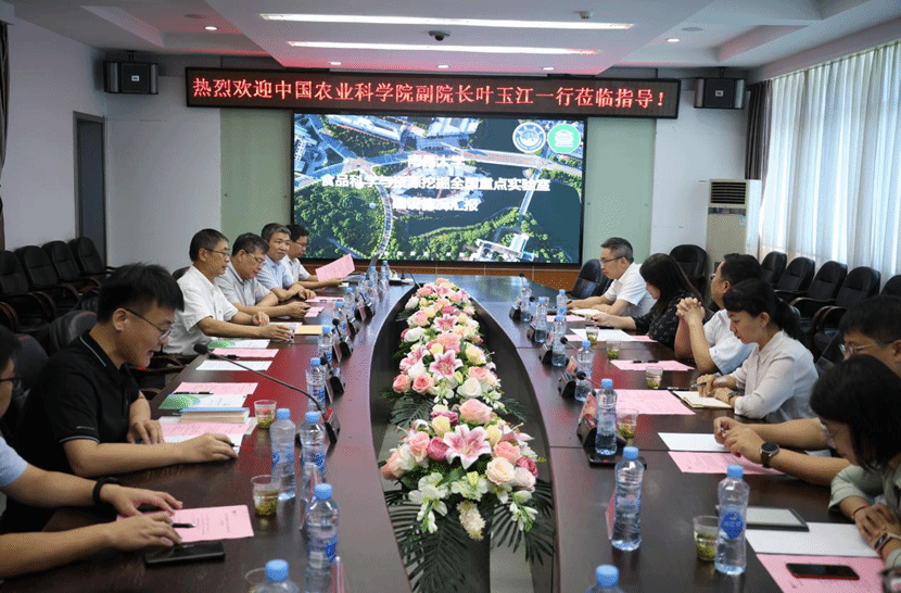 2025年9月8日下午,中国农业科学院副院长叶玉江研究员一行莅临南昌大学开展合作交流,旨在深化双方在食品科学与农产品加工领域的合作,共同推动科技创新与产业发展。南昌大学党委书记罗嗣海,党委常委、副校长聂少平,中国工程院院士、食品科学与资源挖掘全国重点实验室主任谢明勇,食品学院院长殷军艺和书记温平威参加了双方交流活动。