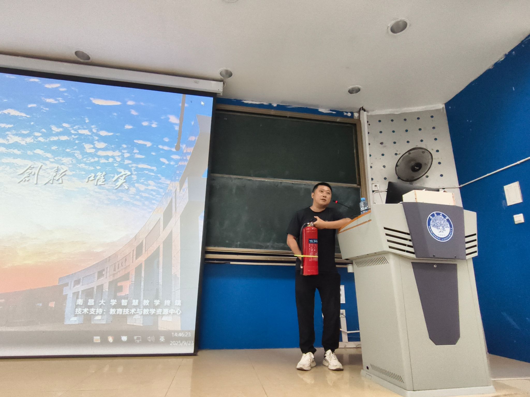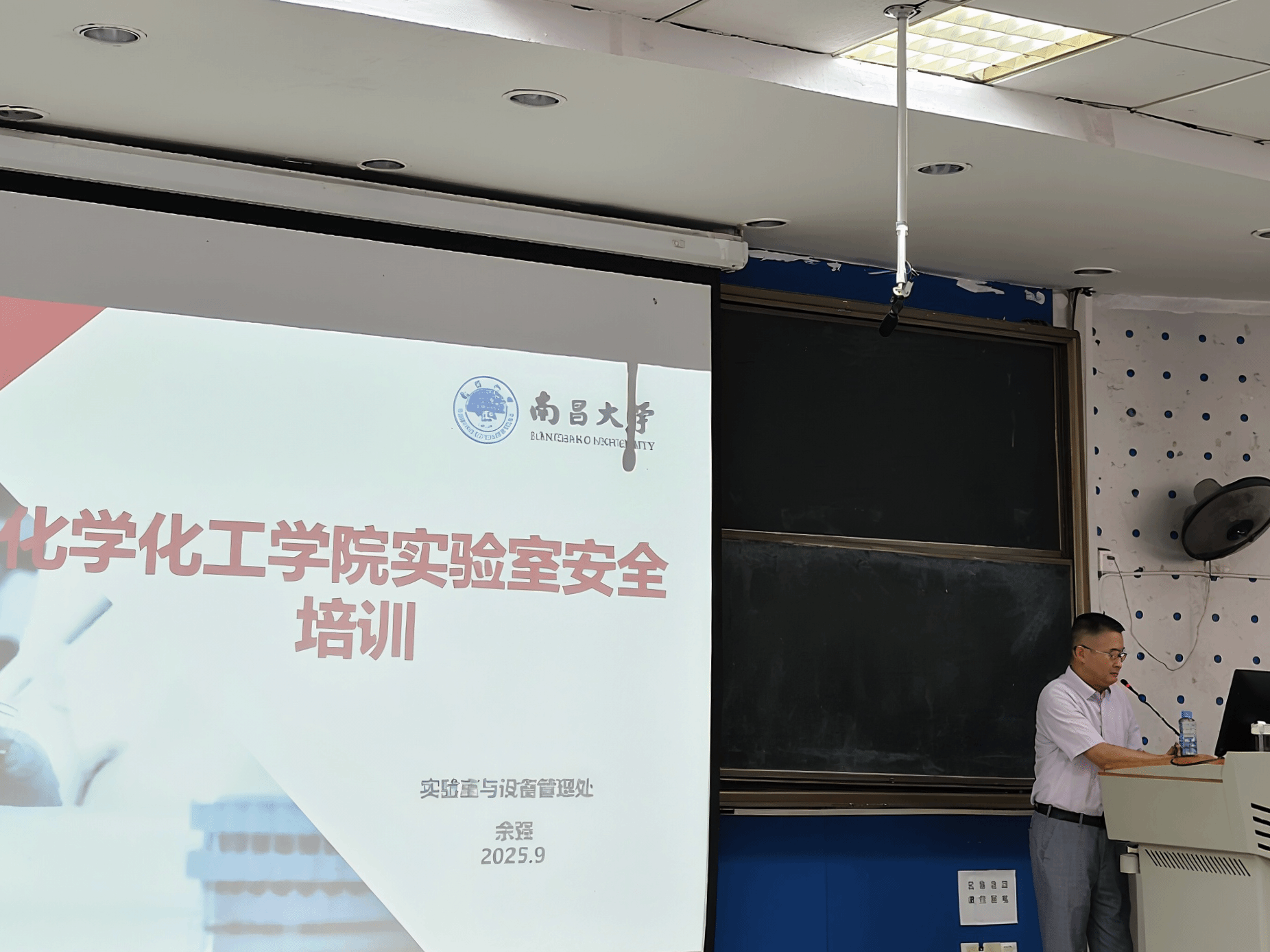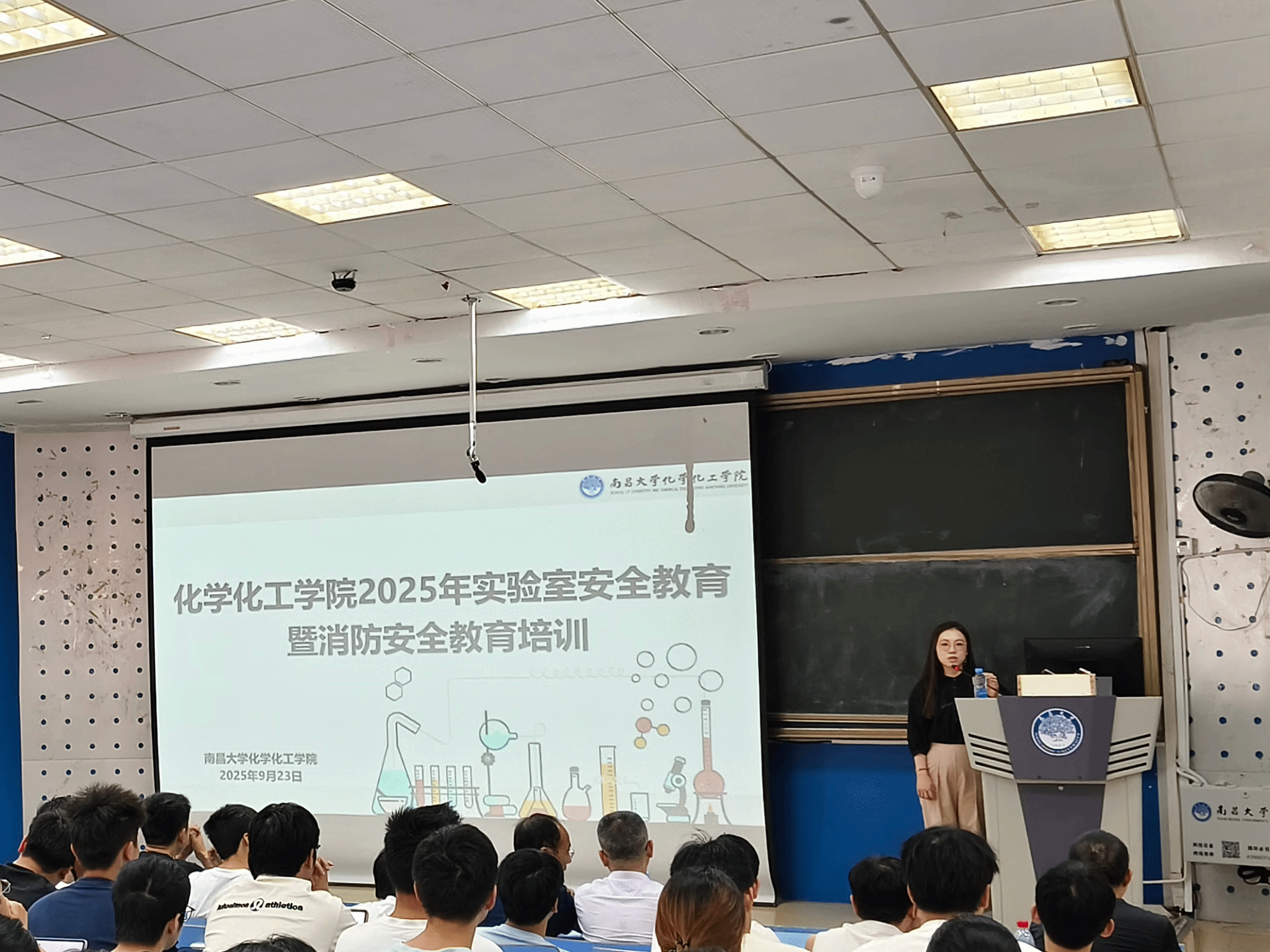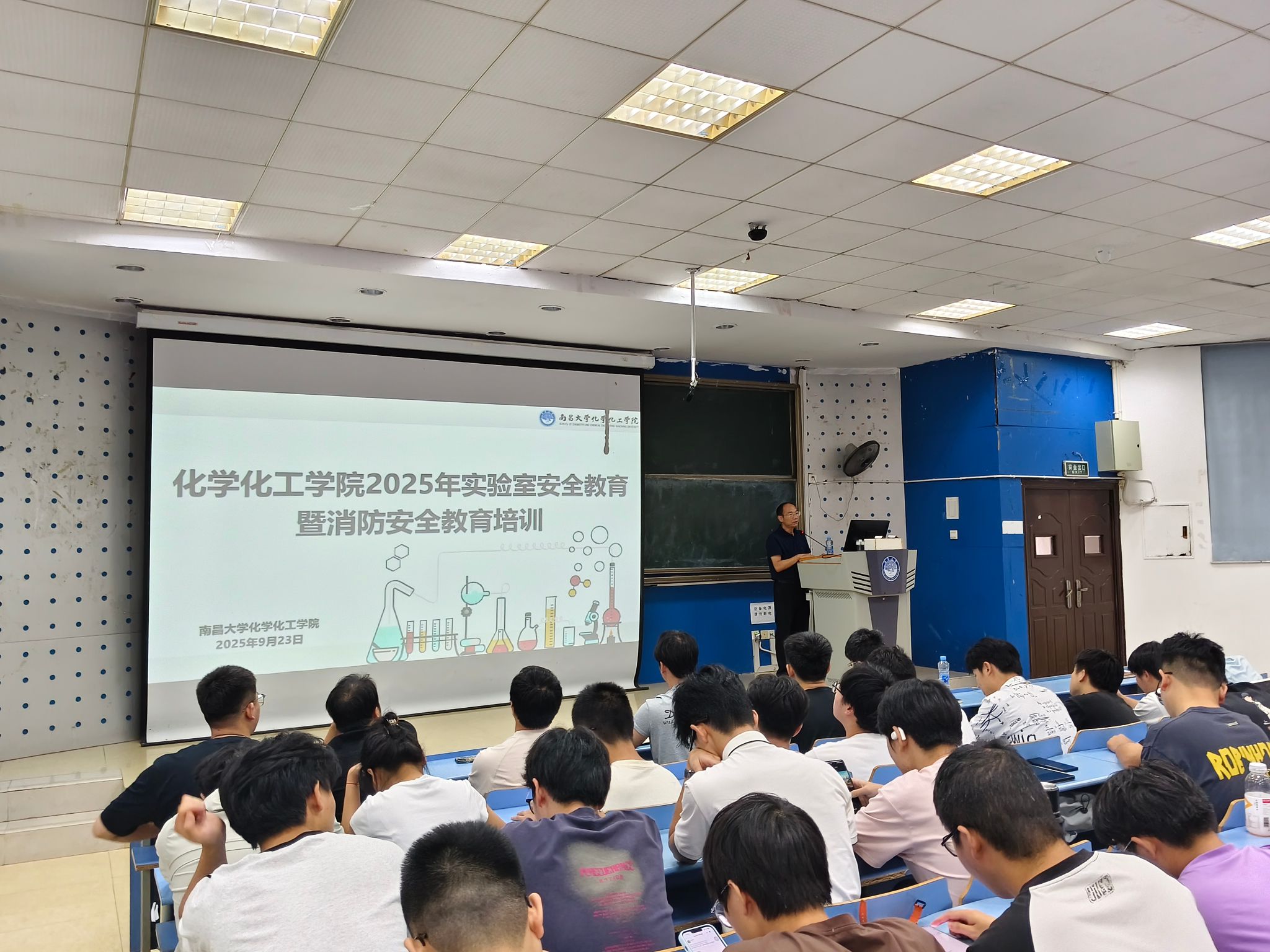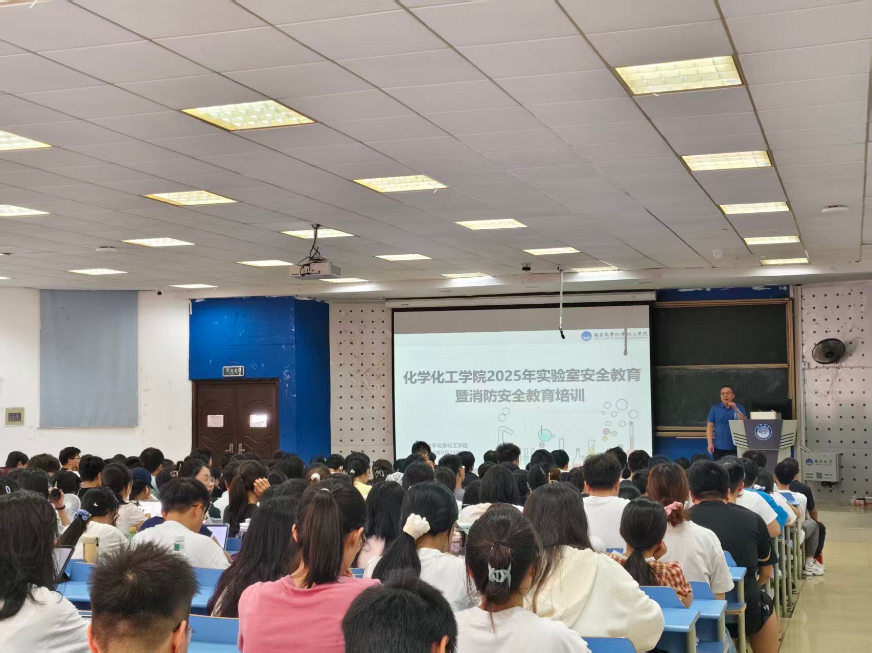 化学化工学院于2025年9月23日下午,在环材楼B101组织开展了2025年实验室安全教育暨消防安全教育培训会。会议邀请了校实验室与设备管理处副处长余强和校保卫处消防科邓明亮作专题报告。2025级全体研究生新生、新晋教师和实验室安全员共320余人参加培训。会议由副院长王玉林主持。