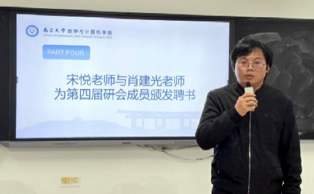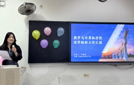 2025年10月27日晚上7点,南昌大学数学与计算机学院第五届研究生会换届大会暨第一次全体会议在研究生院111室顺利举行。学院辅导员宋悦老师、肖建光老师及2024级、2025级研究生会全体成员出席会议,本次大会由新一届研会成员付宇杰、徐可欣主持。