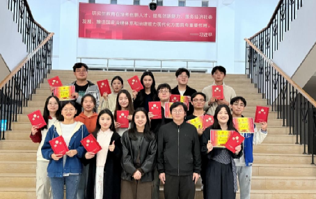 会议最后,辅导员肖建光老师、宋悦老师为2024级研会全体成员颁发聘书与纪念品,并合影留念。