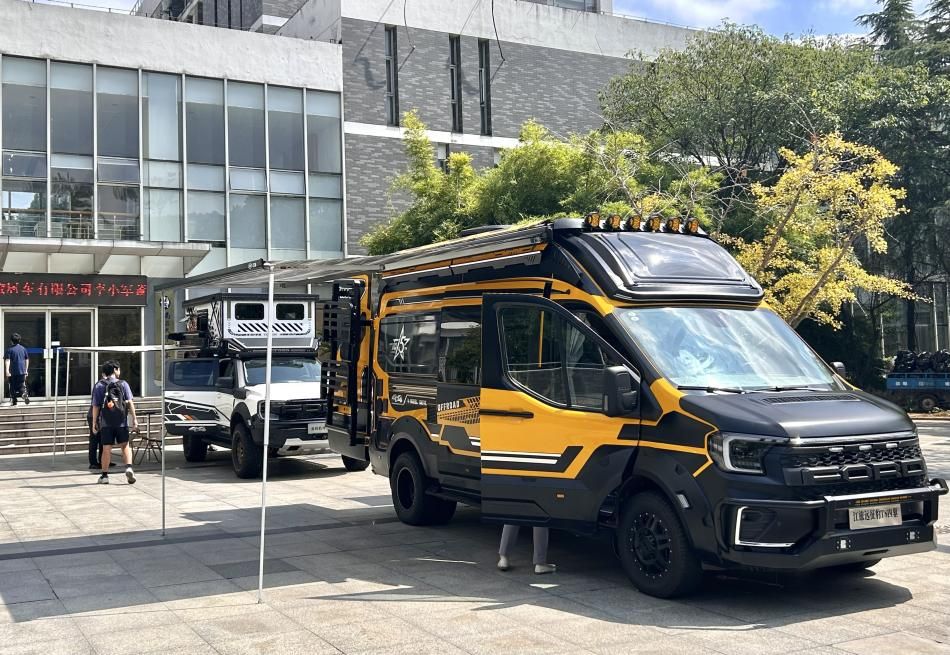 艺术楼正门的用户体验活动同样精彩。江铃汽车集团带来的2款旅居车——金钱豹和远征豹,以其新颖的设计、实用的功能吸引了众多师生驻足体验。大家近距离感受旅居车的内部空间布局、设施配备,与企业人员交流使用感受与改进建议,在亲身体验中加深了对旅居车产品的认知,也为企业优化产品提供了来自用户端的宝贵反馈。