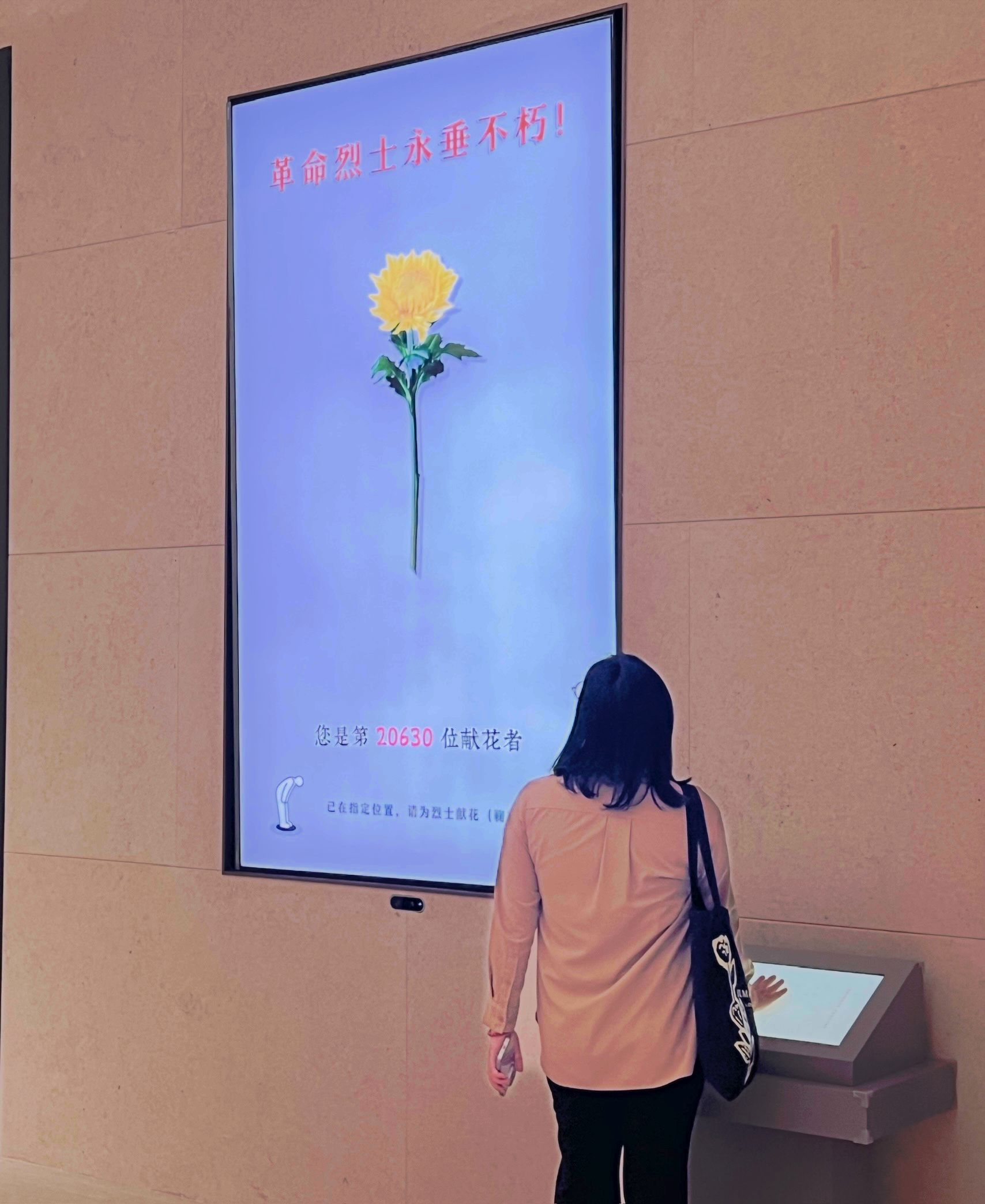 参观过程中,师生们严格遵守参观秩序,认真聆听讲解。大家时而驻足凝视,时而低声交流,用心深刻体会着江西儿女用热血诠释的抗战精神。泛黄的影像无声,诉说着烽火连天的往昔;珍贵的展品静默,承载着气壮山河的记忆。在它们面前,革命先辈为民族解放事业挺身而出的伟大牺牲与卓越贡献,变得无比清晰而具体,让在场师生都深受触动。展览通过传统陈列与现代科技的创新融合,为师生营造了沉浸式的观展体验。在展览尾声,深受触动的师生们通过多媒体互动展项,自发以献花的方式,表达对先烈的深切缅怀与崇高敬意。