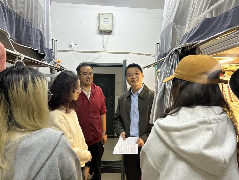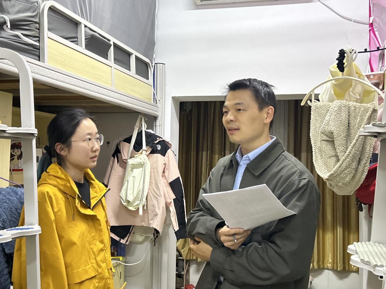检查过程中,学院采取“逐寝走访、细致核查、现场提醒”的方式,对寝室用电、消防等安全隐患进行逐一排查,并现场提出整改意见;同时,对照卫生标准,认真查看寝室内务整理、物品摆放及公共区域清洁情况,针对细节问题康院长耐心提出优化建议。