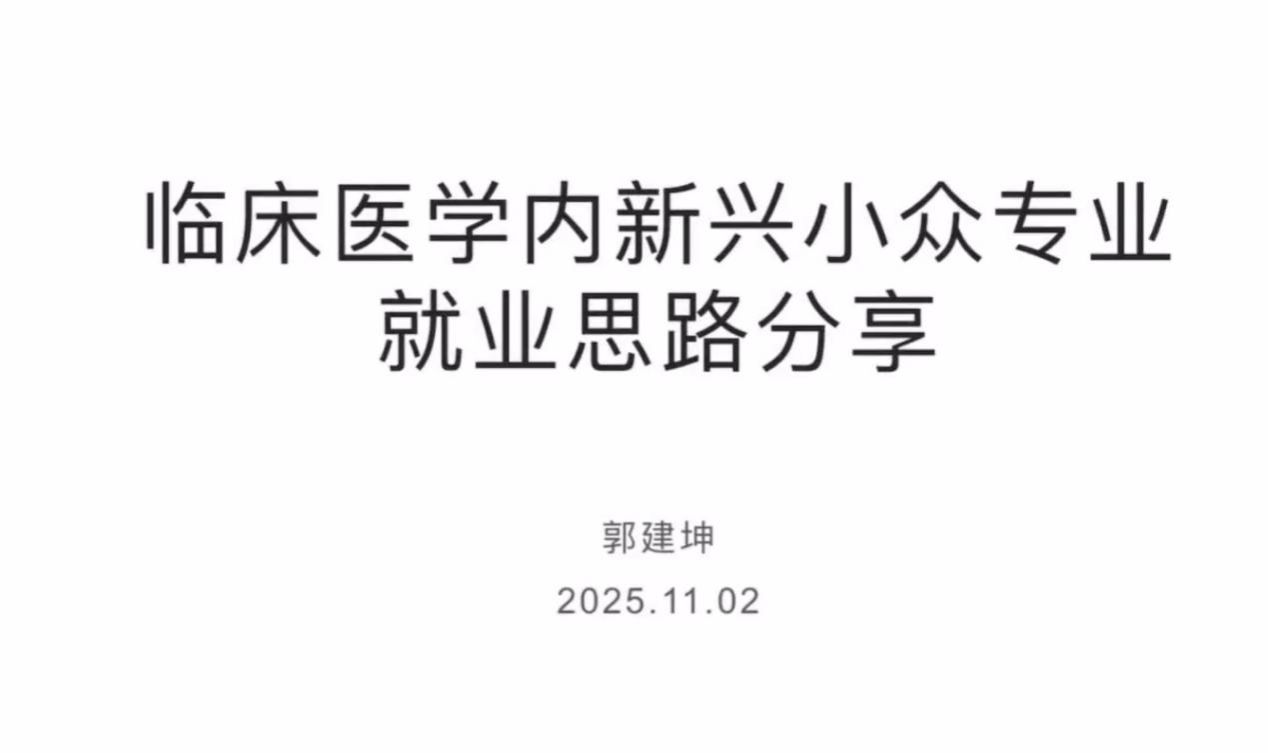郭建坤师姐(就职于天津医科大学肿瘤医院)针对小众专业同学的就业方向提供了实用建议,强调应结合自身研究方向主动拓展相近领域岗位,明确个人优势、积极把握机会,并鼓励大家在面对就业焦虑时“找准方向、充分准备”,从而增强就业信心,从容应对挑战。