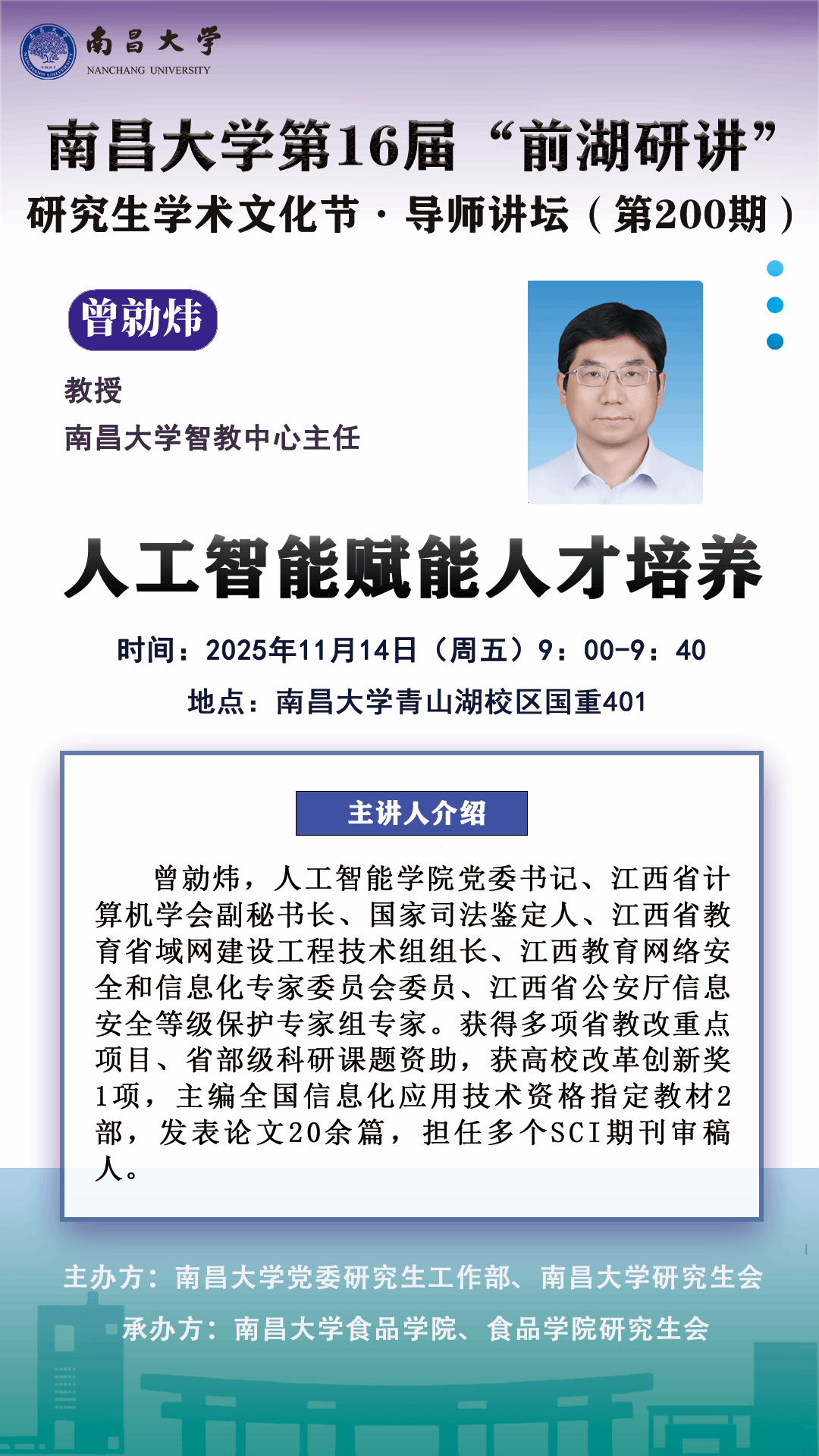 上一条:南昌大学第16届“前湖研讲”研究生学术文化节·导师讲坛(第201期)