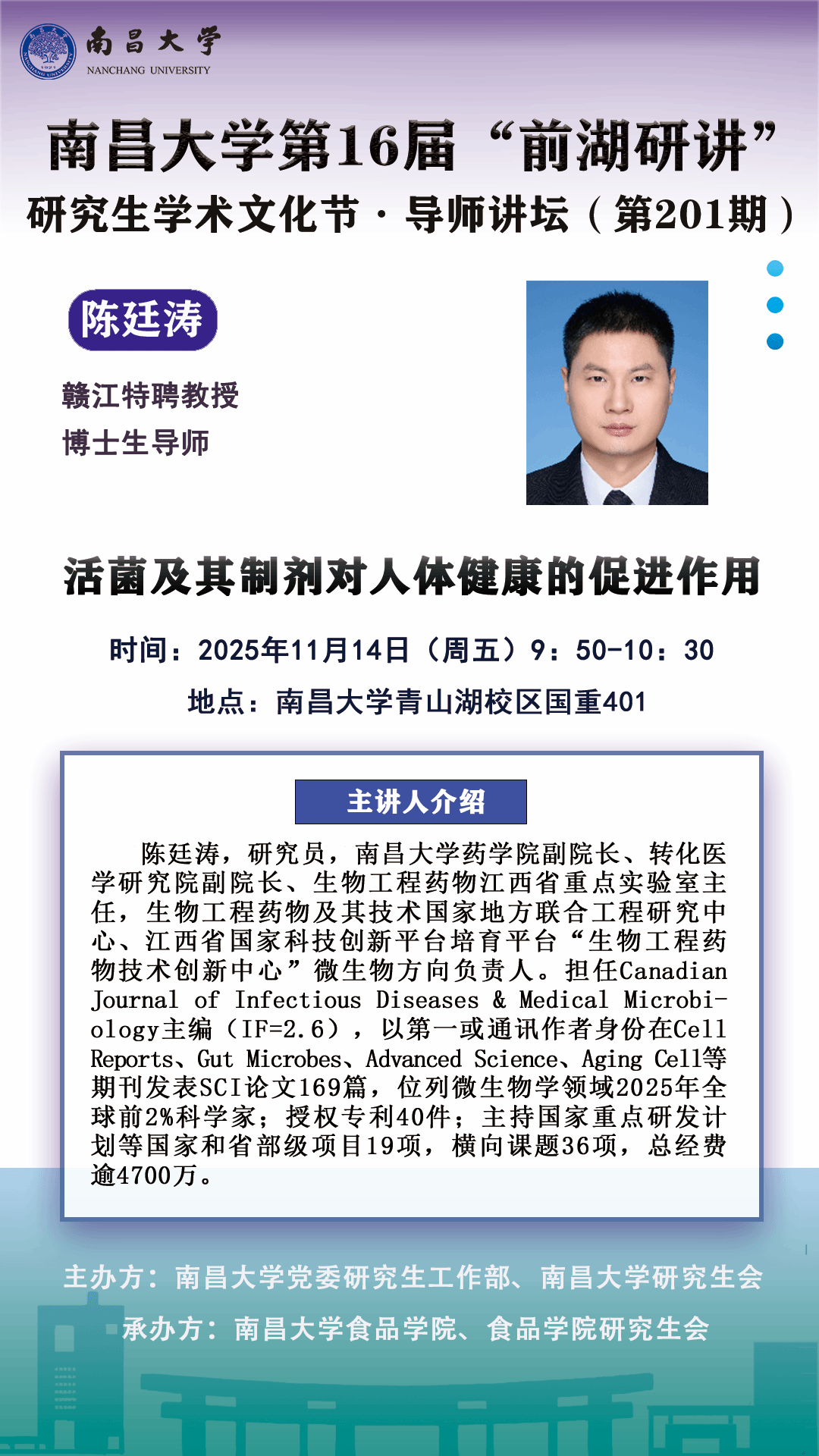 下一条:南昌大学第16届“前湖研讲”研究生学术文化节·导师讲坛(第200期)