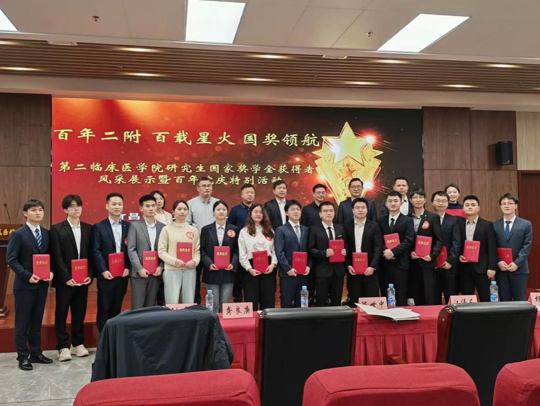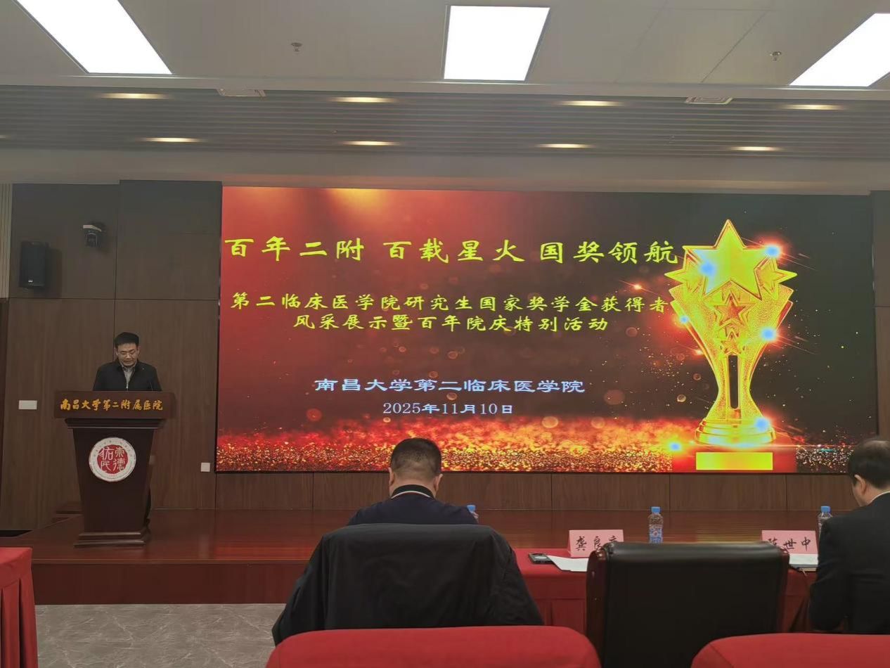 2025年11月10日下午,“百年二附 百载薪火 国奖领航”——第二临床医学院研究生国家奖学金获得者风采展示暨百年院庆特别活动在红角洲院区会议中心一楼隆重举行。