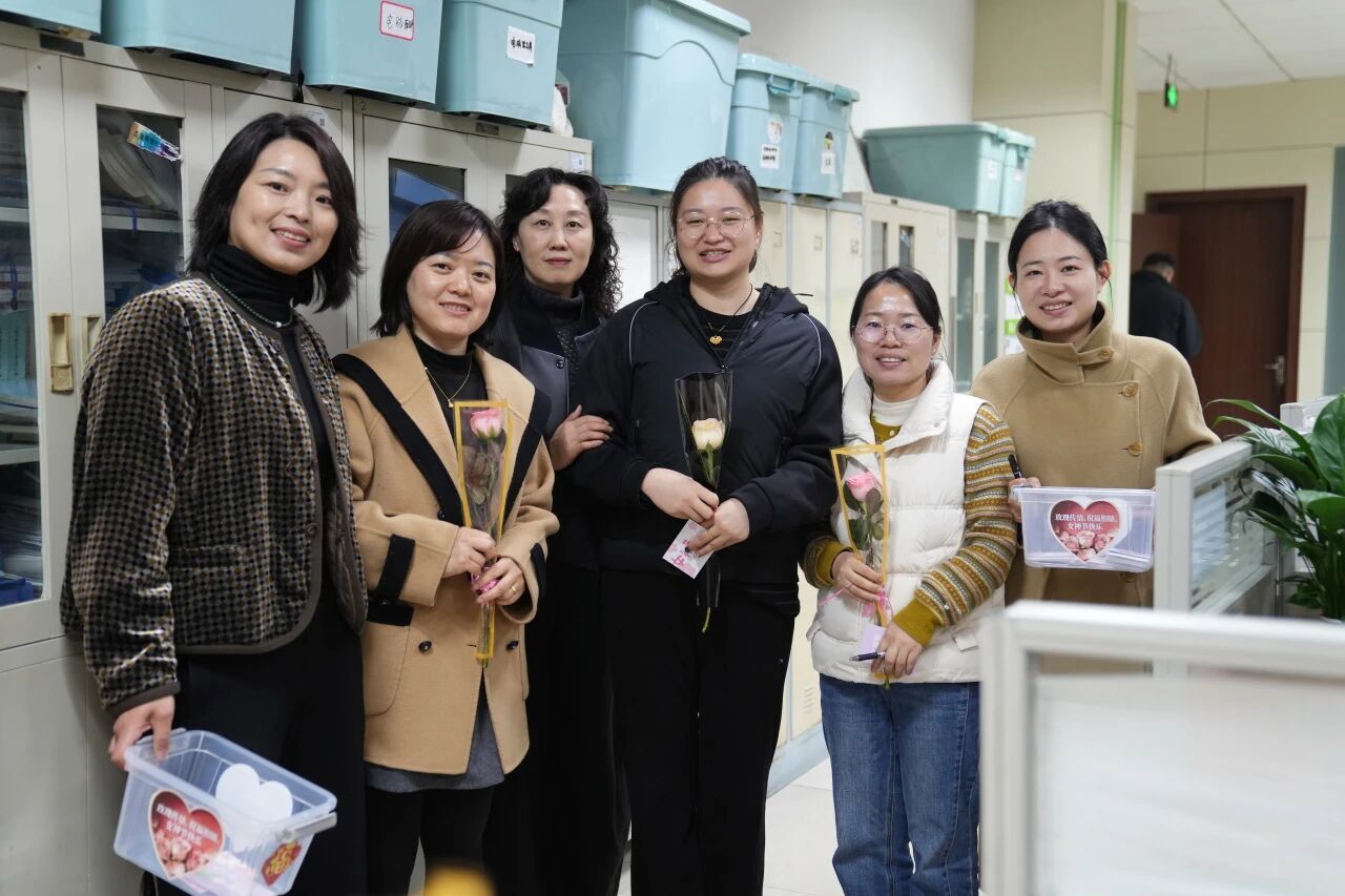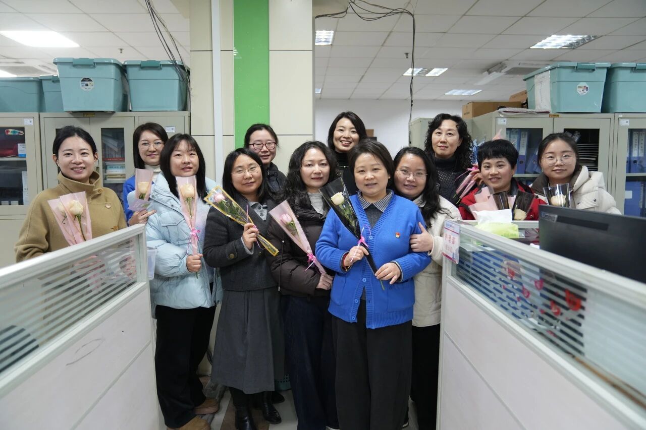 上午9时,由机关后勤党总支书记、工会主席等共同组成的慰问团,手捧娇艳的玫瑰与精心设计的节日贺卡,将一份份满载温情的节日礼物送到正在岗位上忙碌的女职工手中。