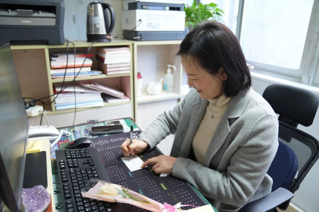 “节日快乐!感谢您为医院付出的每一份努力!”“这朵玫瑰送给你,愿你笑靥如花,芳华自在!”每到一处,慰问团成员都送上温暖祝福。慰问活动还特别设置了“寄语未来”环节。每位女职工在贺卡上写下对自己的美好祝愿,留存待明年节日开启。