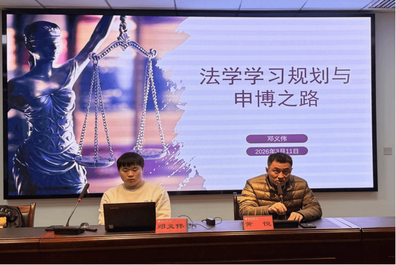 2026年3月11日19:00-20:00南昌大学第16届“前湖研讲”研究生学术文化节之“南小研”微讲堂在文法楼A233教室开讲。讲座邀请南昌大学法学院2022级法律硕士邓义伟分享法学学习规划与申博之路。本次讲座由南昌大学副教授黄悦主持,学院师生踊跃参与。现场氛围热烈浓厚。