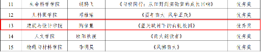 此次优异成绩的取得,充分体现了学院在研究生文化育人方面的积极成效,也展现了研究生以艺术表达抒发爱校情怀、以扎实创作展现青春风采的良好风貌。