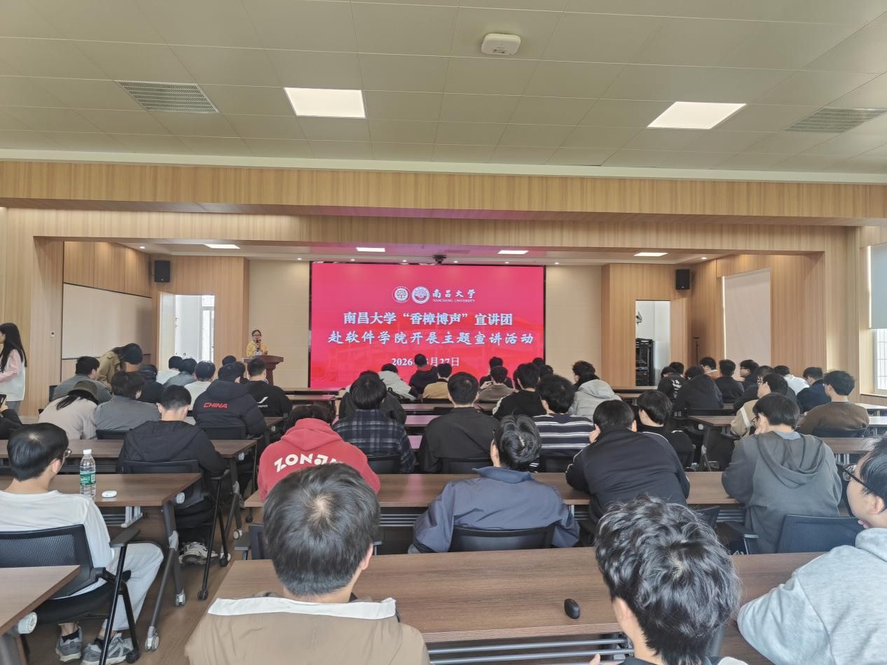 为丰富研究生学术文化生活,厚植文化自信与精神信仰,3月27日,南昌大学第16届“前湖研讲”研究生学术文化节・“南小研”微讲堂(第243期)在软件学院成功举办。活动特邀学校“香樟博声”宣讲团成员徐景苑、楚雅丽两位同学带来主题宣讲,学院百余名研究生到场参与学习。