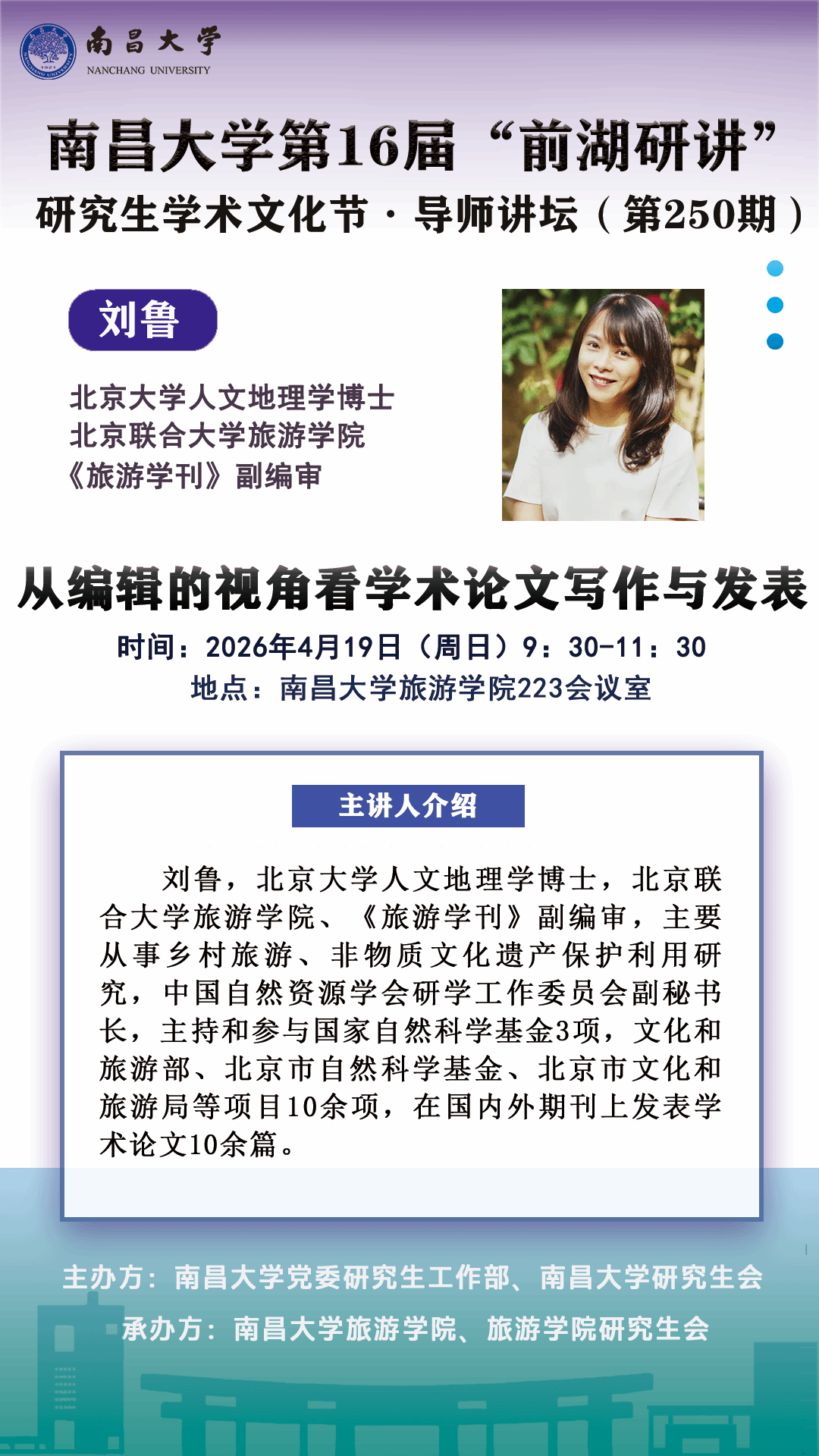 上一条:第16届“前湖研讲”学术文化节 导师讲坛(第251期)