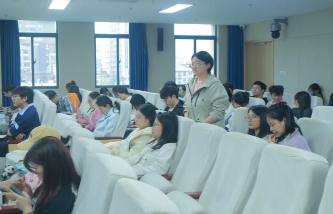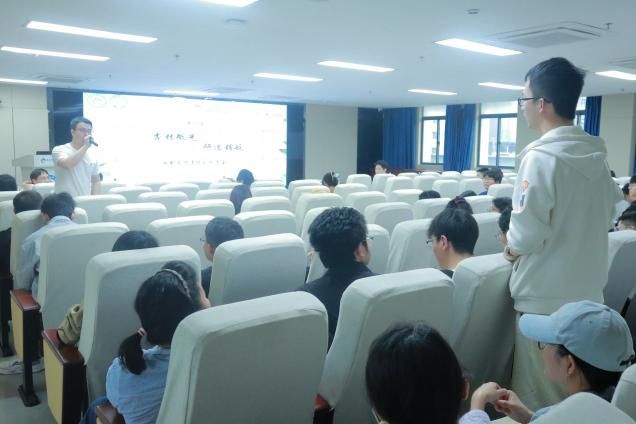 精彩的讲授之后,互动环节将现场氛围推向另一个高潮。同学们结合自身科 研实践,就课题方向遴选、领域进展等核心议题争相提问,与四位优秀研究生代表进行了富有成效的深度对话。现场思想的碰撞激荡出智慧的火花,这场前辈与后学的交流,不仅解答了疑惑,更传承了科学探索的精神,展现了学院笃实好学、互助共进的优良学风。